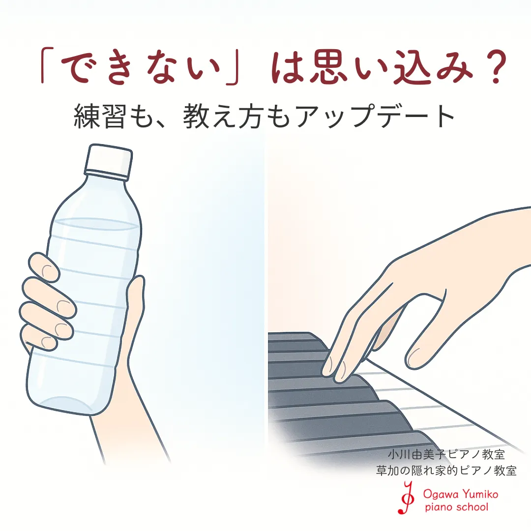 クセや思い込みに気づいて手放すことで、私の練習の仕方も弾き方もアップデートされました。それは生徒さんへのレッスンにも活かしていきます。子どもも大人も、そして私自身も。これからも変化を受け入れながら、より良い演奏の形をともに歩んでいきましょう。