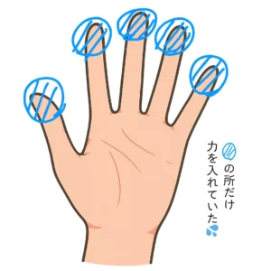たとえばペットボトルを握って持つとき、手のひら全体がボトルに触れているはずなのに、実際に力が入っているのは指先だけ。まるで「つまんで」持っているような感じで、手のひらを十分に使えていなかったんです。