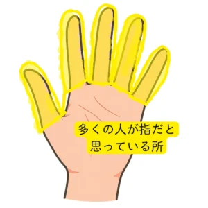 ほとんどの方が、下のイラストの黄色い部分が指だと答えるでしょう。私も数年前までそうでした。