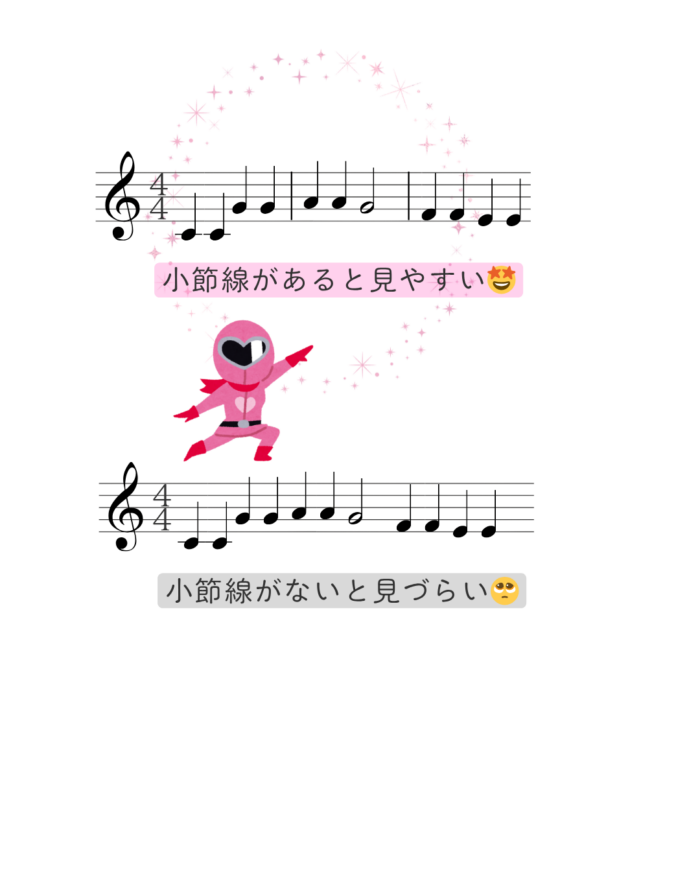 小節や小節線は、音楽をスムーズに読んでいくための大事な道しるべ。