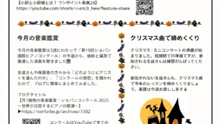ハロウィン🎃からクリスマス🎄へ:最新のピアノ教室だより配布中!体験レッスンにお越しの方にもお渡し中。草加市・川口市でピアノ教室をお探しの方、習い事をお探しの方も、「紅葉と食欲の秋」インテリアに彩られた部屋とレッスンをお楽しみください♪